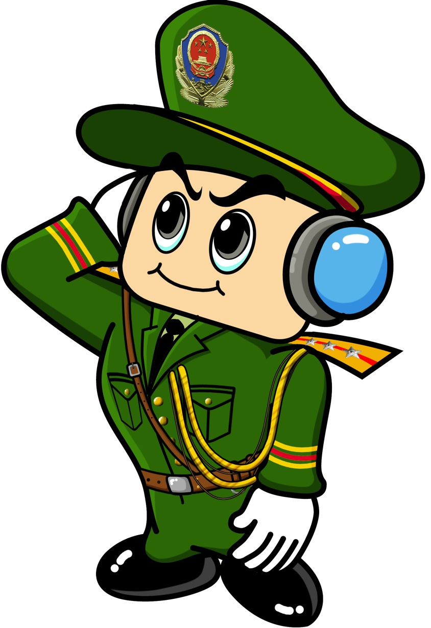 根据武装警察的特点,此形象设计为立正敬礼姿势,挺拔的身姿加之标准的军礼,方阔的脸庞,表现出武警战士的精神风貌,预示着他们正以百倍的精神和最有力的方式保护着广大人民的安危,兑现着对国家的忠诚,全方位体现了武警战士的神勇无敌,特别是一双充满正义的眼睛,更是对一切和平的破坏者起到极大的震慑作用。