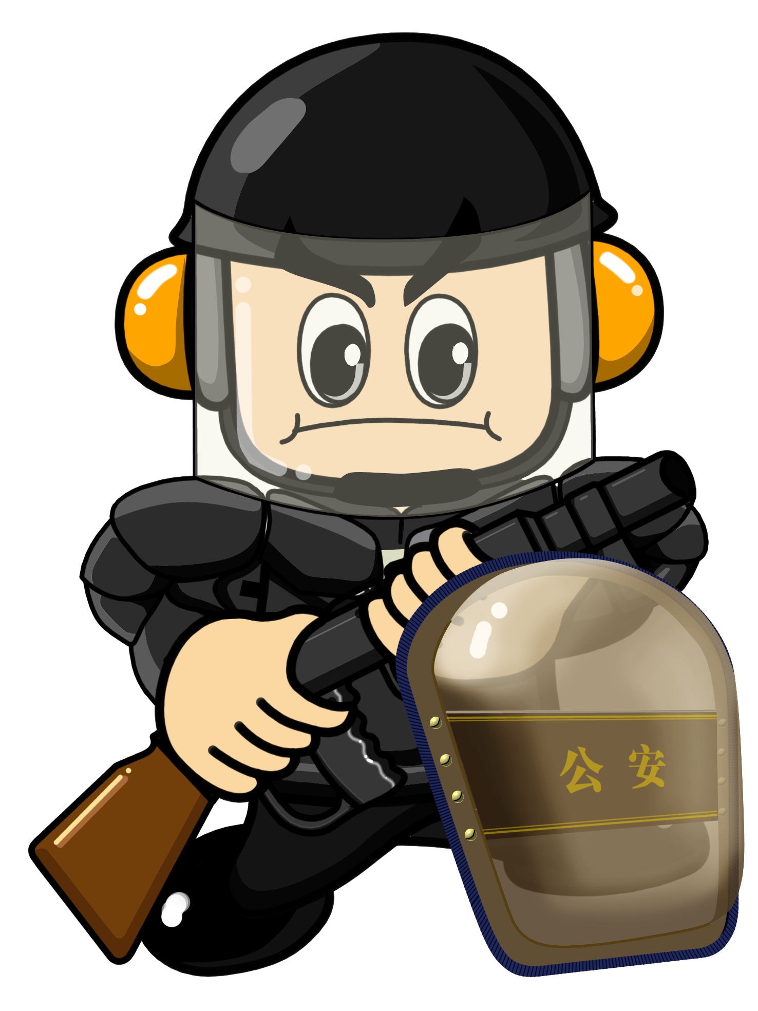 黑色代表威严勇猛,此款卡通形象以黑色为主色调,黑色的钢盔,黑色犹如铠甲的防暴服加上黑色的高科技武器—防暴枪,让特警成为现代治安守卫者的化身;刚毅的剑眉,有楞角的方形脸,短小结实,表现了中国特警勇武精干的形象;坚定不移的眼神更增添了特警威猛不凡的气质,全方位体现了当代特警的丰采。