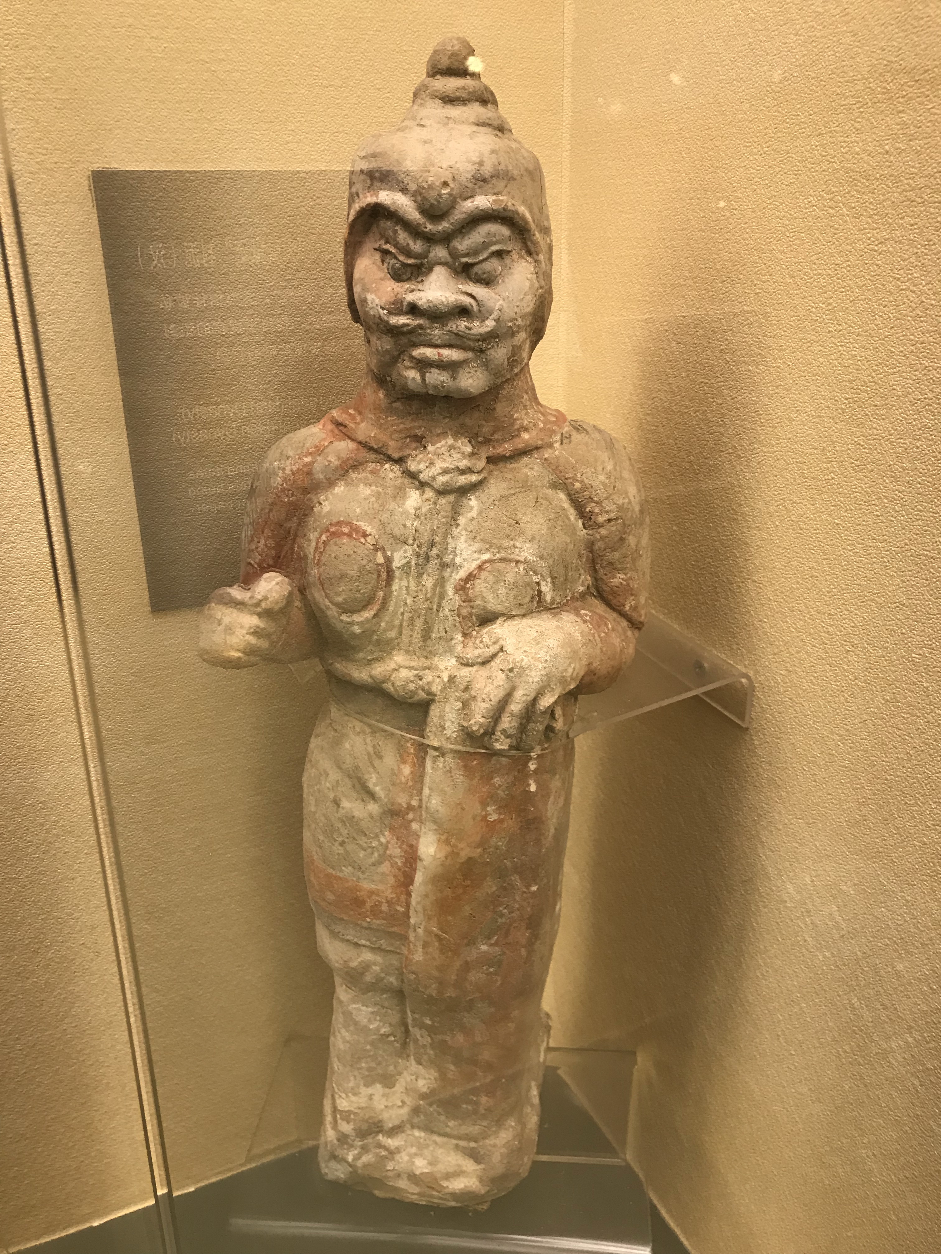 隋朝彩绘陶持盾武士俑