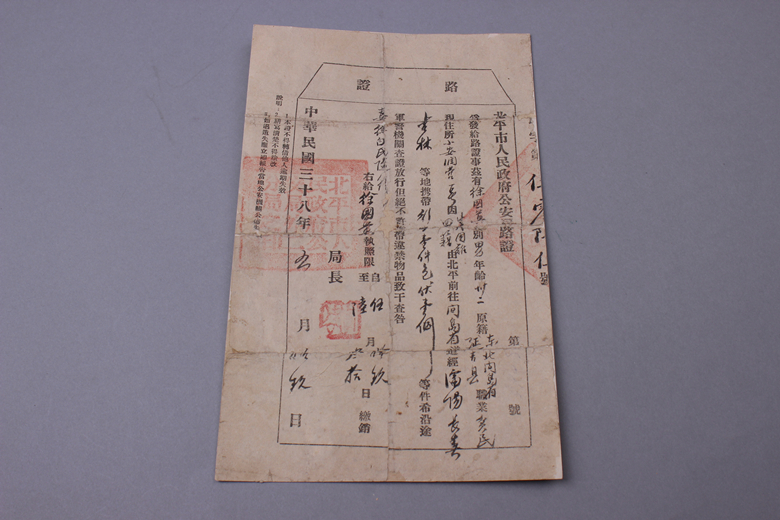 1949年北平市人民政府公安局路证