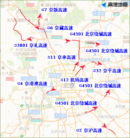 假期的午后时段开始,各条高速的进京方向将迎来车流小高峰,预计京承高速、京藏高速、京港澳高速等高速公路与五环相交的桥区,京港澳高速窦店至六环、京藏高速八达岭段等将出现车行缓慢的情况。