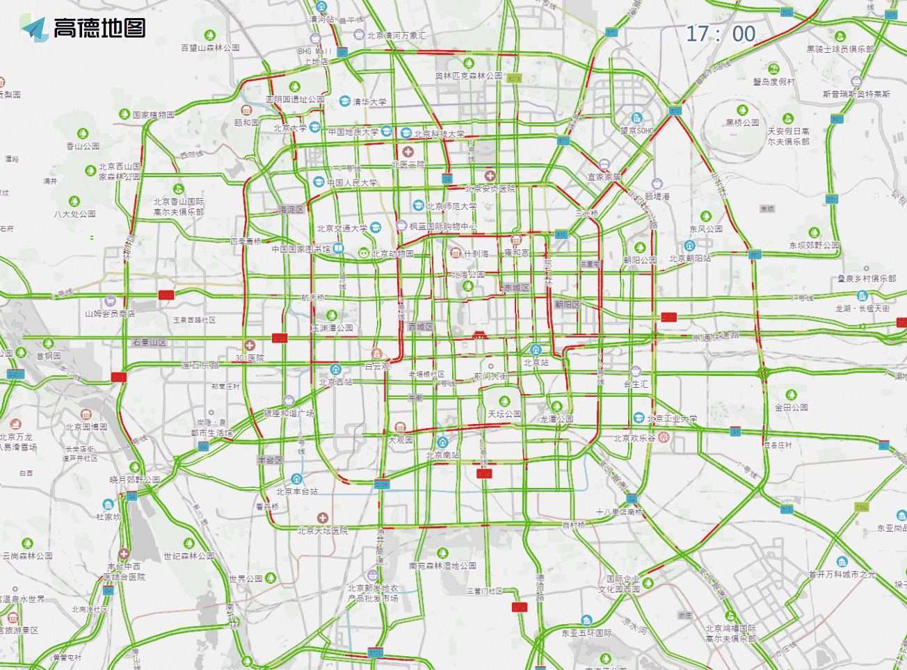 晚高峰期间,城区环路部分路段,万泉河路至圆明园西路、通惠河北路、莲石东路等城区道路出城方向车流集中,京藏高速、京承高速、京通快速、京港澳高速、机场高速等高速公路出京方向将出现潮汐车流,高峰时段为17:00—20:00,周五晚高峰交通压力将尤为突出。